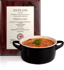 Osiągnięcia Dyplom w Konkursie Produkty najwyższej jakości w przemyśle mięsnym za najwyżej oceniony produkt: Zupa Węgierska 2012 Zobacz więcej » 2012-01-01